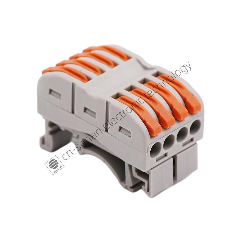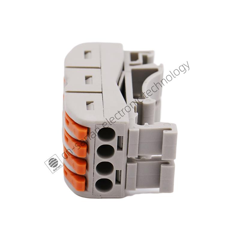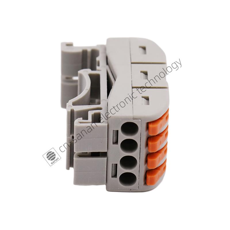 सीधे कंडक्टर कनेक्शन के लिए डिन रेल टर्मिनल क्विक कनेक्टर विकसित किए गए हैं। इसका मतलब यह है कि ठोस कंडक्टर या फेरूल वाले कंडक्टर को सीधे कंडक्टर कनेक्शन के लिए विकसित उपकरणों के बिना सीधे टर्मिनल ब्लॉक में डाला जा सकता है। इसका मतलब है कि ठोस कंडक्टर या फेरूल वाले कंडक्टर को बिना किसी उपकरण के सीधे टर्मिनल ब्लॉक में डाला जा सकता है, जिसका अर्थ है कि सुरक्षा सुनिश्चित करना, इस बीच बहुत समय बचाना, डिन रेल डिजाइन, प्रत्येक जंक्शन स्वतंत्र छर्रे, अलग-अलग तार को अलग से प्रबंधित करना, सुरक्षा प्रदर्शन में सुधार करना। वितरण बक्से, नियंत्रण कैबिनेट, स्विचगियर, उपकरण के पूर्ण सेट, मशीनरी और गृह सुधार में व्यापक रूप से उपयोग किया जाता है।